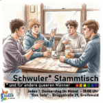 - Schwuler StammtischAb sofort findet jeden 1. Donnerstag im Monat um 19:00 Uhr im Restaurant „Sofa“ in der Brüggstrasse 29 unser schwuler Stammtisch statt, zu dem wir euch herzlich willkommen heißen. Dieser Stammtisch richtet sich an alle schwulen und queeren* Männer, die Lust haben neue Leute kennenzulernen, Anschluss zu finden, die tollsten Neuigkeiten … Weiterlesen